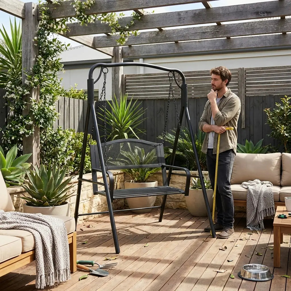 Always check the width, depth, and hanging height. Ensure there is sufficient clearance for a safe swinging arc and easy access. For smaller balconies or patios, a compact hanging chair is more practical than a larger swing bench.