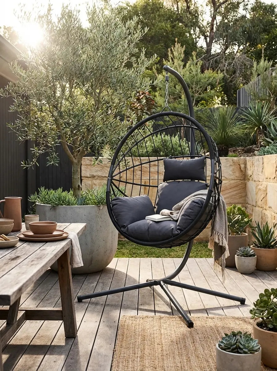We remember the simple magic of a tyre swing or a handmade hammock—a private escape to dream and relax. As we grew, we realised this need for a "quiet corner" remains essential. This inspired Eglorys: a curated collection of hanging chairs and swing benches designed to bring that same sense of wonder and calm into the modern Australian home.