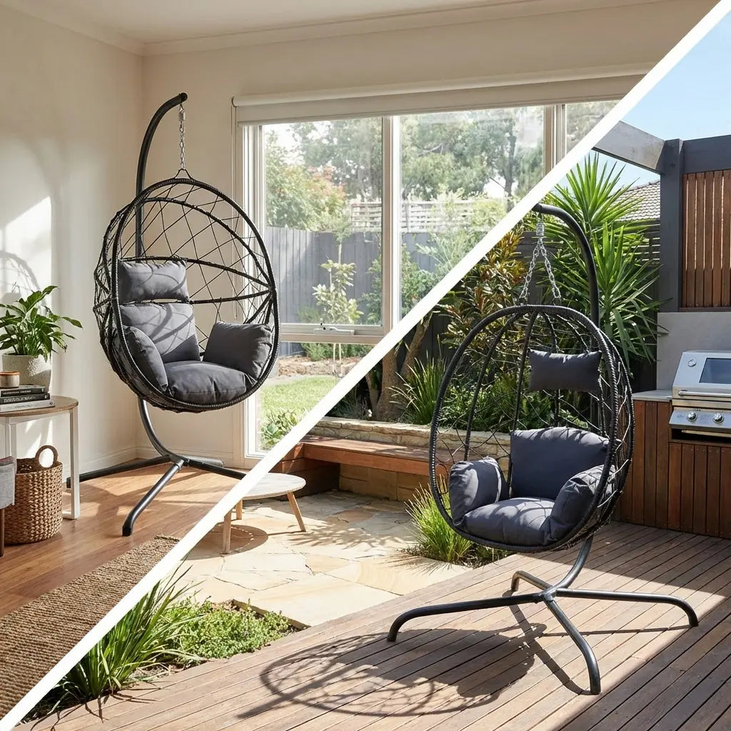 For outdoor use, choose materials built to withstand the Australian elements. Look for UV-resistant fabrics and powder-coated frames to prevent rust. Many models are versatile enough for both settings, offering flexibility for your lifestyle.